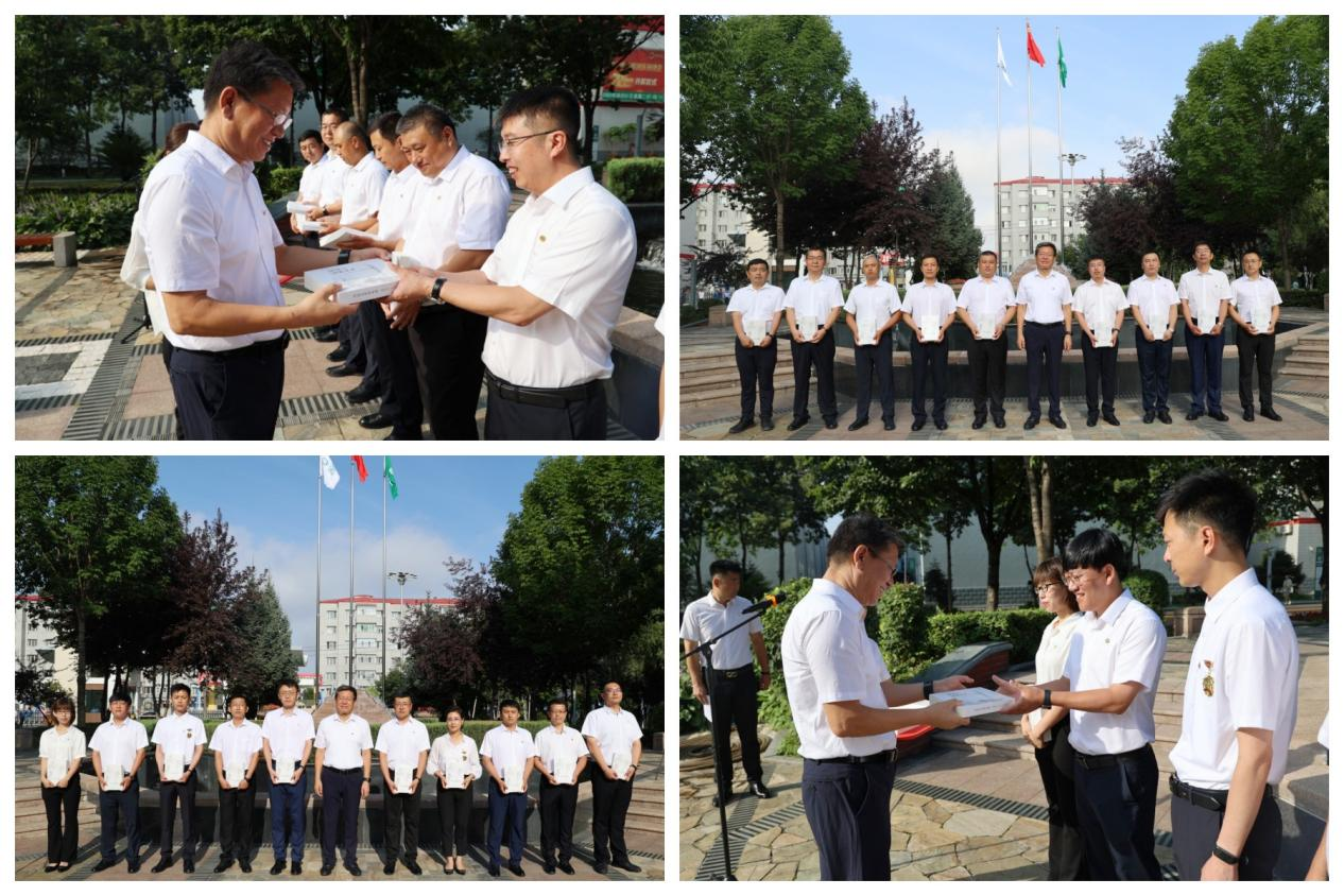 升旗仪式结束后,举行了《从过去看向未来》文集发放仪式。党委书记、董事长徐祥分别为股份公司年轻一代经营管理层成员、两级后备干部代表授书。